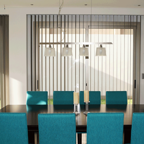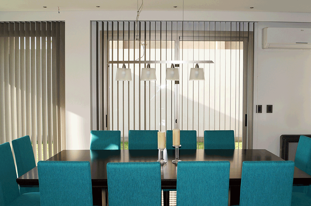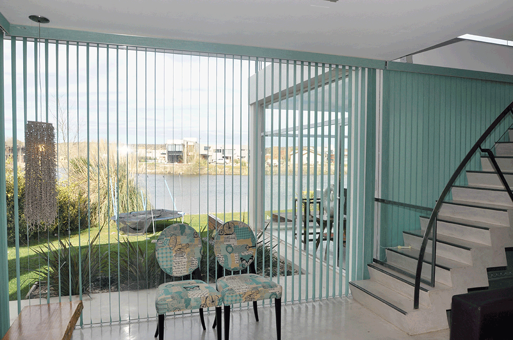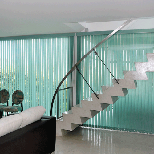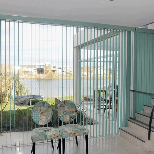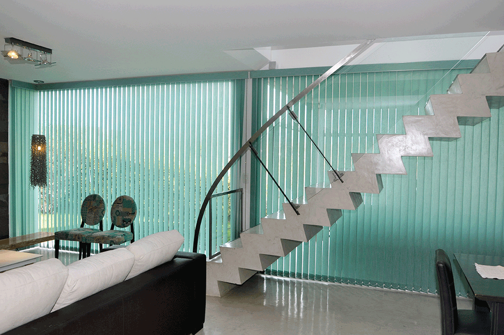 Sistema de bandas verticales que ofrecen la mejor solución para ventanas de grandes dimensiones. La regulación de las bandas permite la entrada completa de luz cuando están abiertas y brinda privacidad cuando están cerradas.