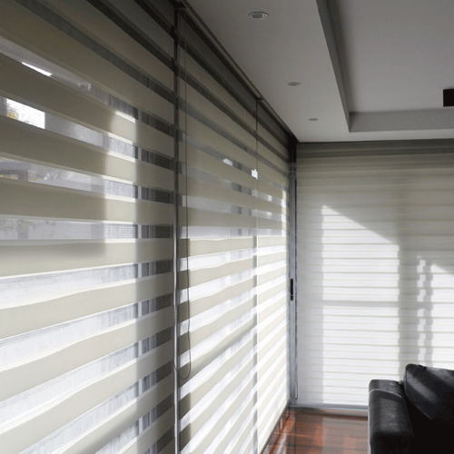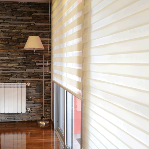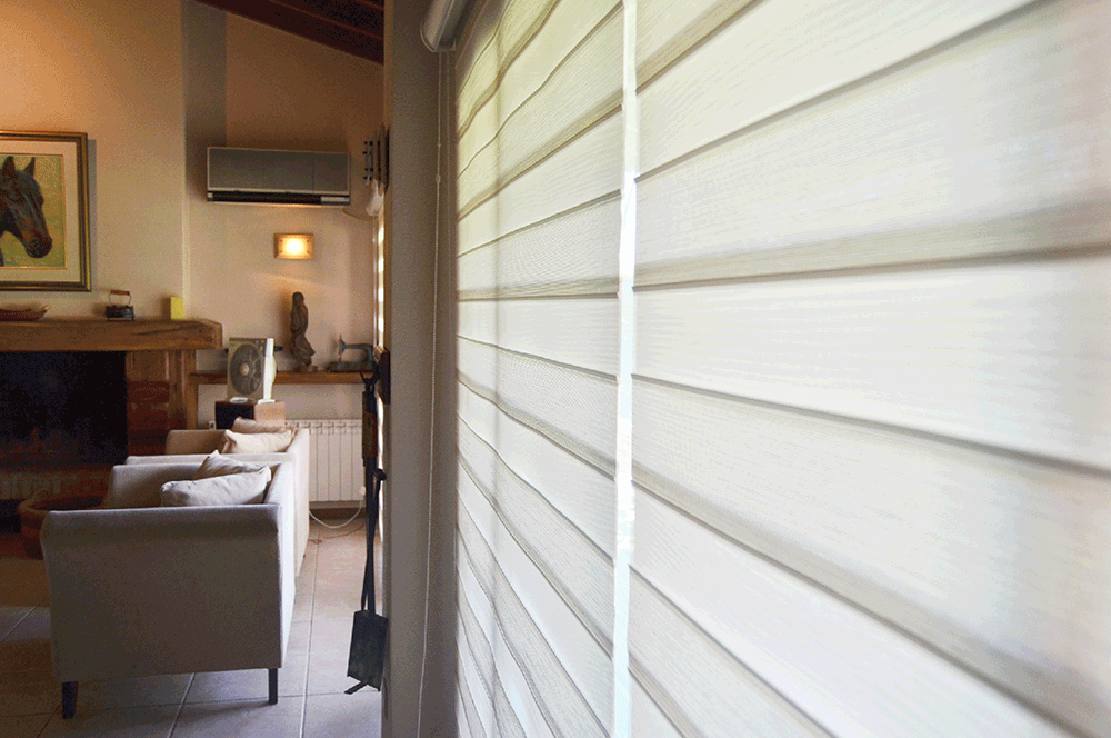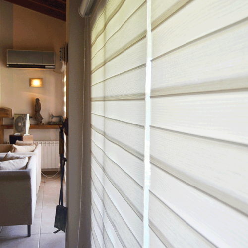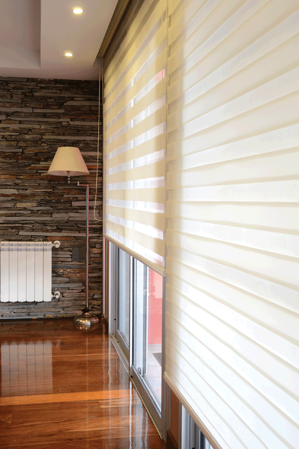 Es una cortina de doble tela, de bandas horizontales y tramas alternadas que cumplen la función de otorgar transparencia y privacidad, según la posición en que se encuentre. Esta línea se distingue por su elegancia y sus finas terminaciones.