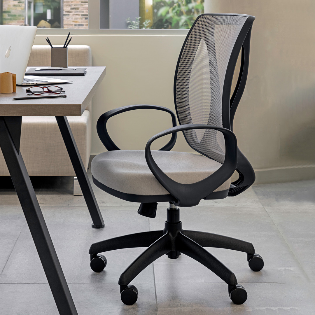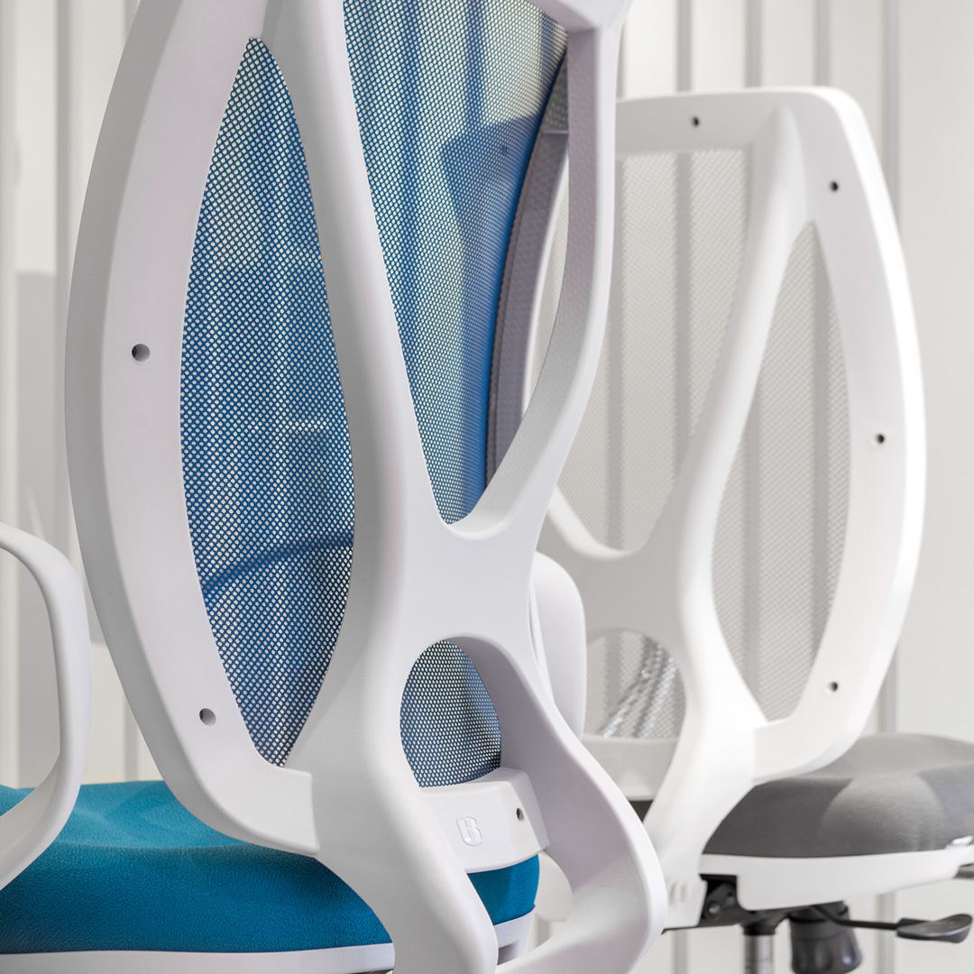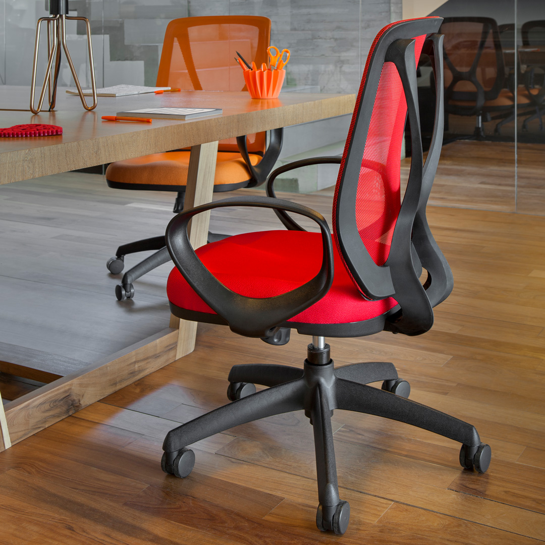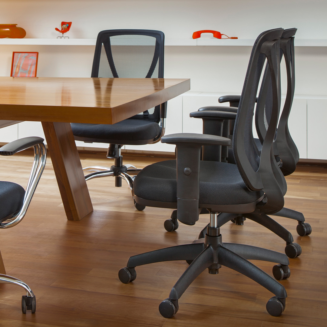 Silla ejecutiva que combina diseño estético y comodidad. Su respaldo alto brinda soporte completo para la espalda, mientras que su asiento ergonómico garantiza confort durante largas jornadas. Disponible en estructura negra o blanca.