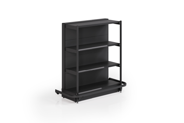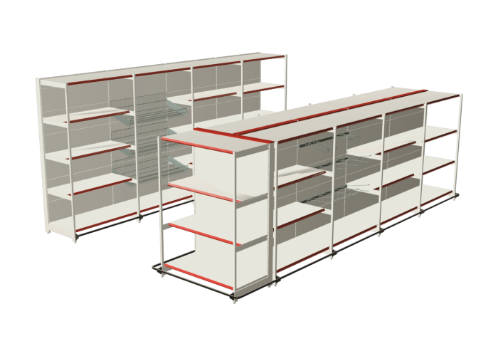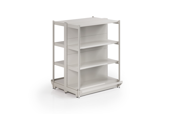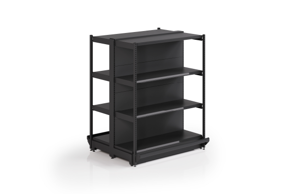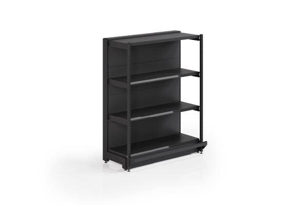 La góndola RACK fue dimensionada y reforzada para cargas más pesadas y de grandes volúmenes. Incluyendo en la parte frontal un parante 30×30 el cual está vinculado a través de ménsulas con doble enganche, logrando la robustez necesaria para ser la góndola más resistente del mercado.