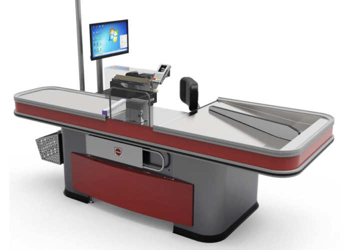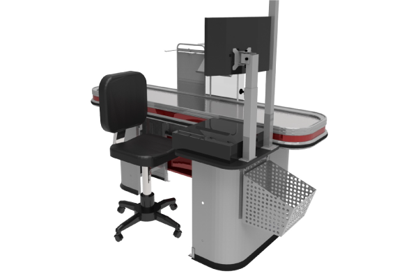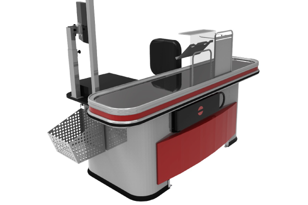 Es un mueble adaptable a la medida y necesidad del cliente, gracias a su diseño compacto y elegante le permiten realzar la estética de su línea de cajas. Ha sido creado con una idea innovadora y moderna con radios pronunciados y vistosos.
