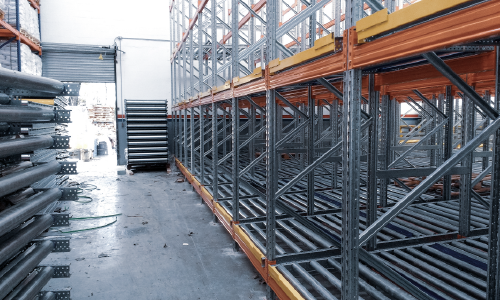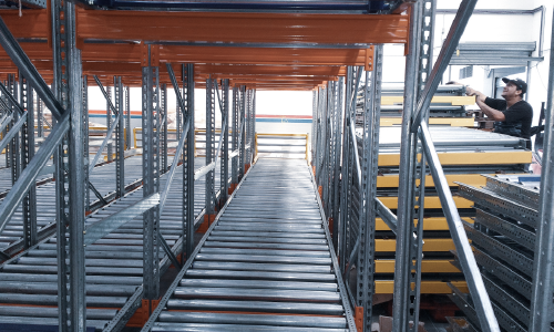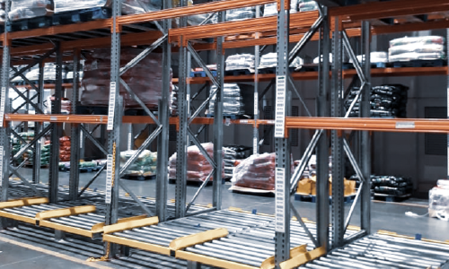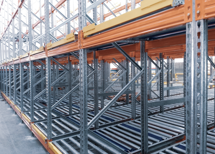 Sistema de almacenamiento por gravedad diseñado para optimizar la rotación de productos y agilizar la preparación de pedidos. Utilizan rodillos que permiten que la mercadería avance por inclinación, garantizando un flujo continuo, ordenado y eficiente. Ideales para operaciones con alta rotación o productos que requieren manejo FIFO.